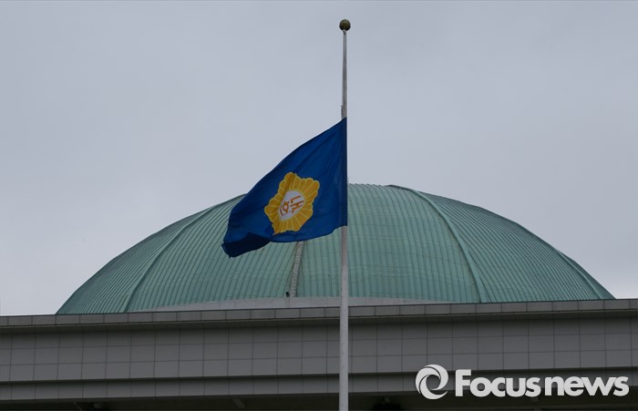 | △ 23일 오전 서울 여의도 국회 본청에 지난 22일 서거한 김영삼 전 대통령을 추모하는 조기가 걸려 있다. <사진제공=포커스뉴스> |