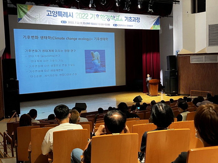[부자동네타임즈 김인수기자] 고양시(시장 이동환)는 지난 2일 130여명의 교육생이 참여한 가운데 ‘2022년 고양특례시 기후환경학교’ 기초과정이 고양시 문예회관에서 개강했다고 밝혔다.