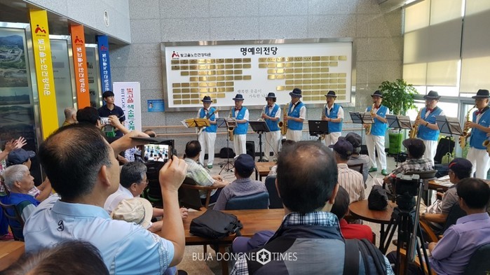 공연 첫날인 27일에는 빛고을 색소폰 오케스트라 회원들의 색소폰 공연이 펼쳐졌다. 사회자의 능숙한 진행과 흥겨운 멜로디는 회원들의 눈과 마음을 즐겁게 했으며 젊은 날 들어왔던 익숙한 노랫말은 한낮 무더위를 잊게 했다.