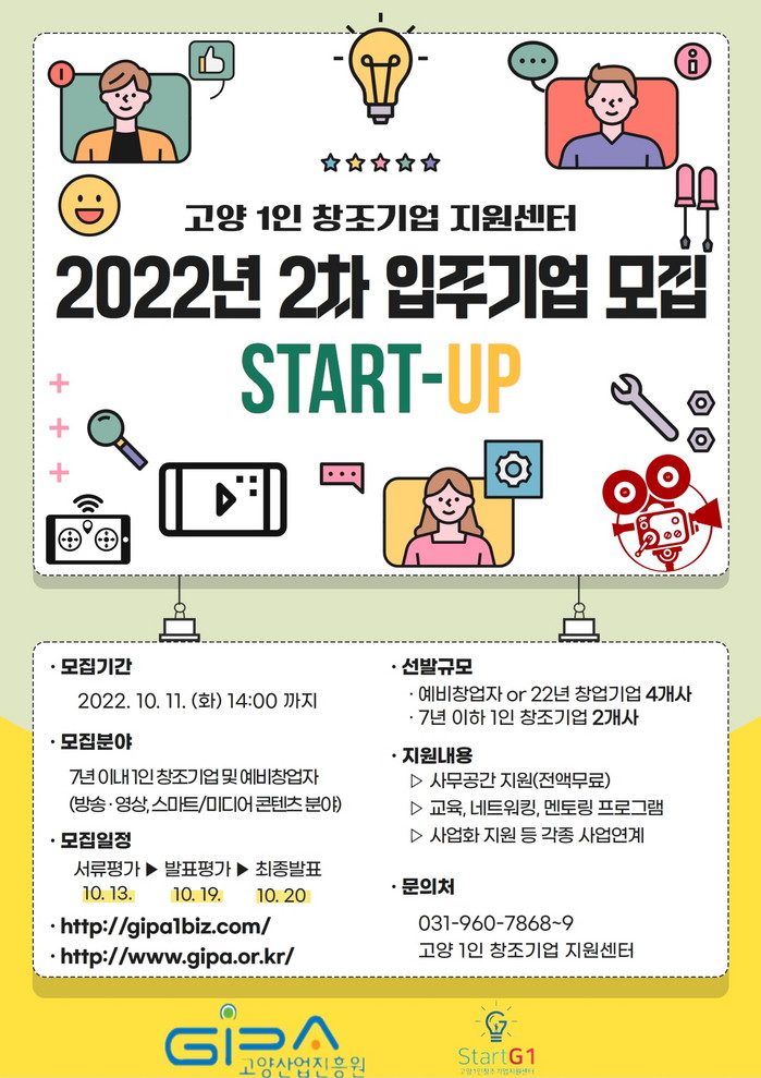 [부자동네타임즈 김인수기자] 고양특례시(시장 이동환) 고양산업진흥원(원장 오창희, 이하 진흥원)이 운영하는 고양 1인 창조기업 지원센터에서 2022년 2차 신규 입주기업을 모집한다.