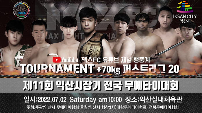 이번 MAXFC ‘퍼스트리그 20 더블 토너먼트’ 대회는 7월 2일 전북 익산 실내체육관에서 개최되며,코로나 이후 첫 관중 입장이 허용된다. VIP를 제외한 전 관람석 무료 입장으로 진행되며, 유튜브 MAX FC 채널에서 생중계된다.