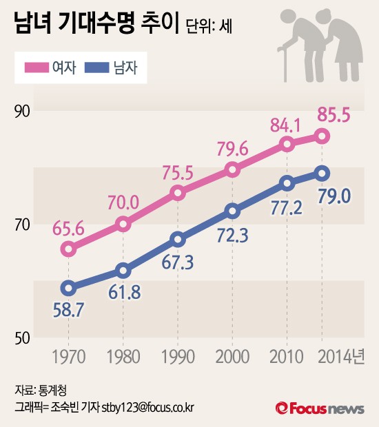 [부자동네타임즈 이현재 기자] 지난해 한국인의 기대수명이 남성은 79년, 여성은 85.5년으로 나타났다.