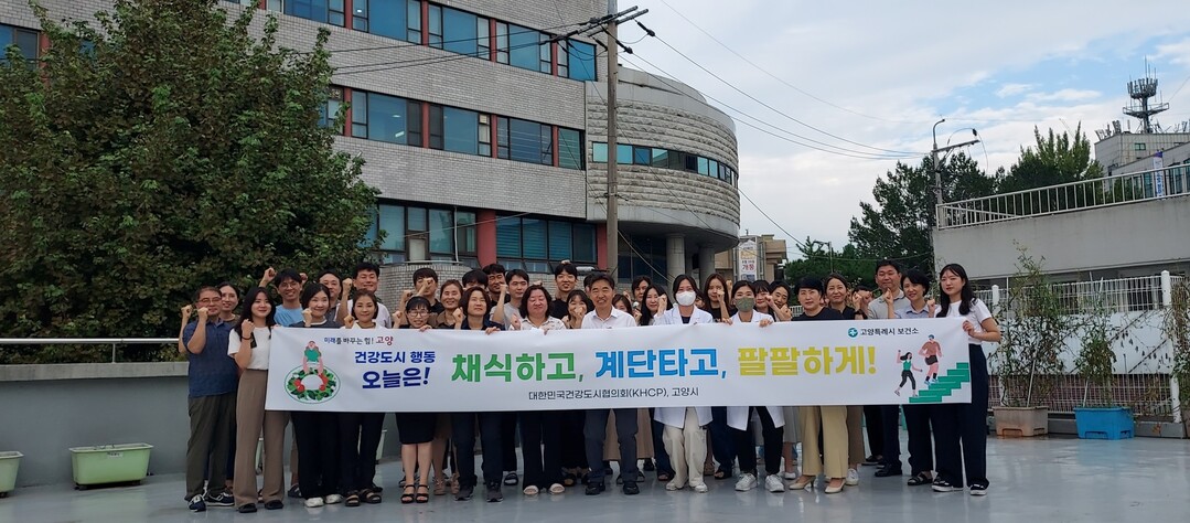 [부자동네타임즈 = 김인수 기자] 지난 5일 지속가능한 ‘건강도시 고양’을 실현하기 위해 건강도시 공동행동 슬로건인 ‘채식하고, 계단타고, 팔팔하게!’ 선포식을 열었다. 이날 선포식에 덕양구보건소장을 비롯한 시 관계자 50여명이 참석했다.