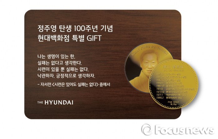 | △ 현대백화점은 현대그룹 창업주인 아산 정주영 탄생 100주년을 기념해 순금 주화를 특별 제작했다.응모를 통해 100명에게 한정 증정한다.<사진제공=현대백화점> |