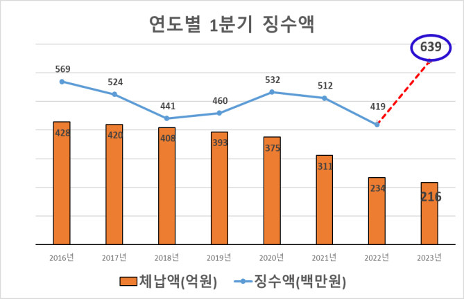 [사진설명] 연도별 1분기 징수액 도표.