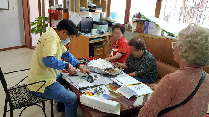 [사진설명] 마을 주민이 찾아가는 칼갈이 사업을 이용하고 있다.