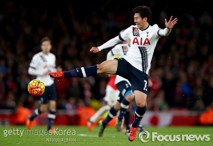 △ <런던/영국=게티/포커스뉴스> 토트넘 소속 손흥민이 11월9일 새벽(한국시간) 원정으로 열린 아스날과의 프리미어리그 경기에서 슛을 시도하고 있다. (C)게티이미지/멀티비츠