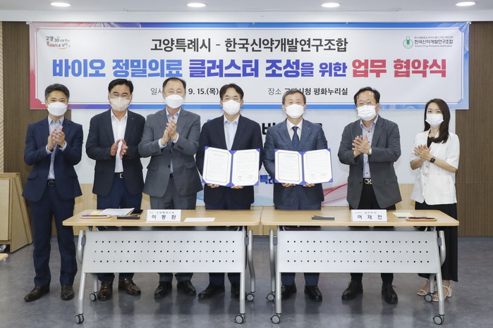 협약에 따라 고양시와 한국신약개발연구조합은 △고양시 바이오 정밀의료 클러스터 조성을 위한 육성 협력 △고양시 바이오 정밀의료 클러스터의 경쟁력 강화 협력 △정밀의료 산업의 기술발전 및 중소·벤처기업의 육성을 위해 필요한 사항 지원 등에 적극 협력한다.