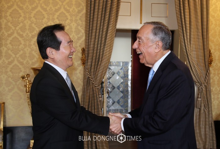 [부자동네타임즈 조영재 기자]포르투갈을 공식방문 중인 정세균 국회의장은 현지시간 1월 19일(금) 마르셀로 헤벨로 드 소우자(Marcelo Nuno Duarte Rebelo de Sousa) 대통령과 만나 양국 간 교류확대와 협력 강화를 위한 방안을 논의했다.