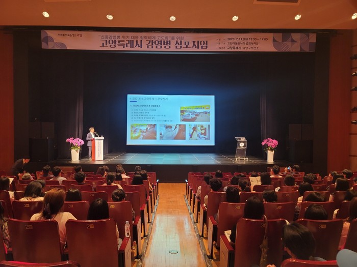 [부자동네타임즈 김인수기자] 지난 11일 고양어울림누리 별모래극장에서 고양특례시 제1부시장과 감염병 전문가, 고양시 보건소와 경기도 보건소 직원 등 200여 명이 참석한 가운데 ‘고양특례시 신종감염병 대응 협력체계 구축 학술토론회’를 개최했다.