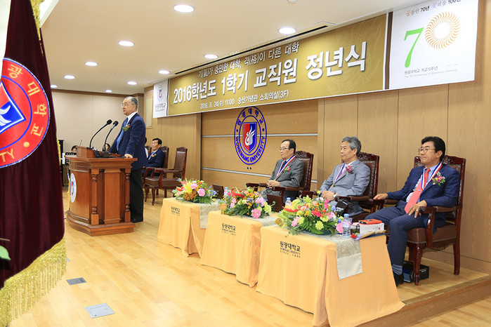 이번에 정년을 맞은 교직원들은 김진국(국어교육과), 김환용(전자공학과), 김영순(음악과), 이광진(미술과), 정동훈(미술과), 우종양(음악과), 김태웅(군사학과) 교수와 직원 김평겸(정보전산원 운영관리과), 정철주(관리처 안전관리과) 선생 등 모두 9명이다.
