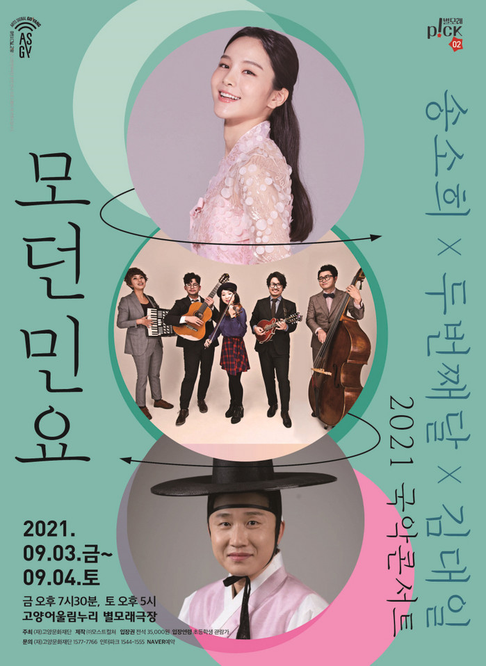 [부자동네타임즈 김인수기자] 고양문화재단(대표이사 정재왈)은 2021 별모래P!CK시리즈 두 번째 작품으로 송소희&두번째달&김대일 국악콘서트 모던민요를 9월 3일(금)과 4일(토), 이틀간 고양어울림누리 별모래극장에서 선보인다. 이번 공연은 송소희와 두 번째달의 경기민요 앨범 모던민요 수록곡과 김대일의 대표 레퍼토리로 구성된 국악콘서트이다.