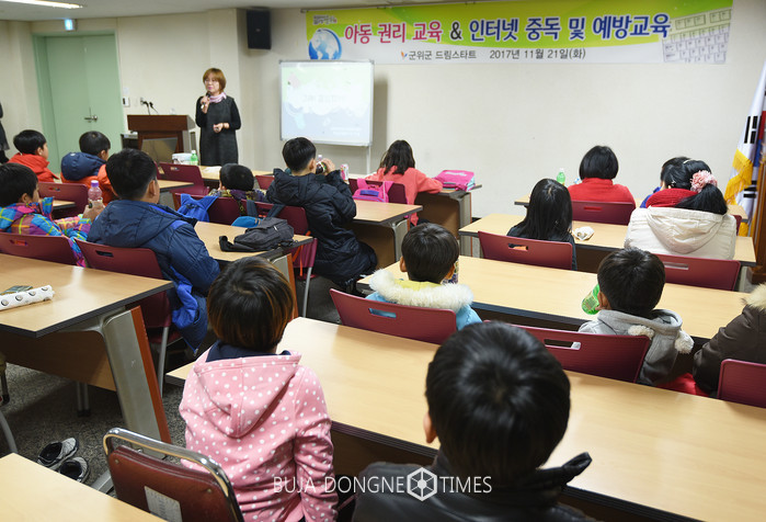 11.21일 오후 7시부터 1시간동안 드림스타트 강당에서 학생과 학부모 40여명이 참석한 가운데 군위청소년상담센터 장정임씨가 강사로 나와 아동권리 교육과 인터넷 중독예방에 대한 교육을 했다.
