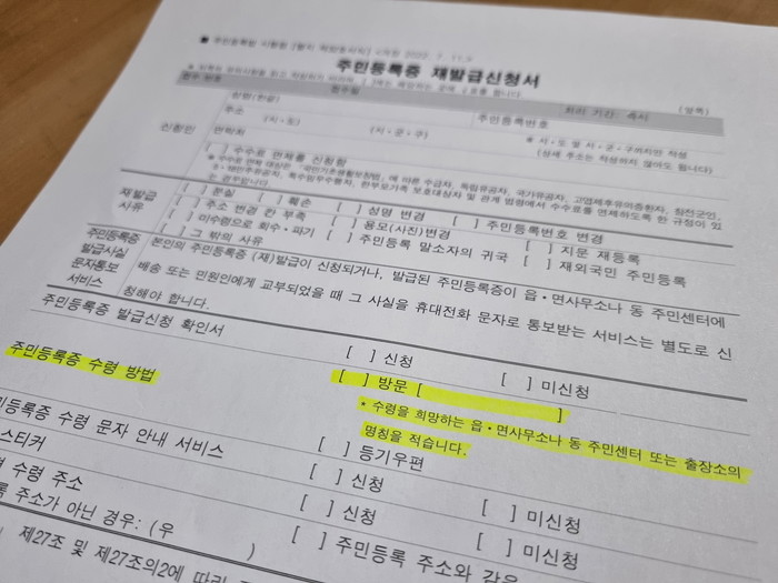 [사진설명] 개정된 주민등록증 발급 신청서.