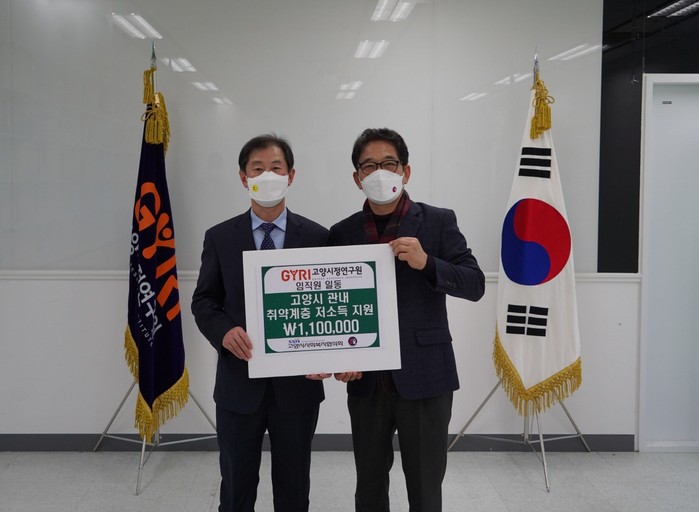 [부자동네타임즈 김인수기자] 고양시정연구원은 설 직전인 지난 1월 29일 고양시 관내 저소득/취약계층 지원을 위하여 고양시 사회복지협의회에 임직원이 함께 모금한 기부금 110만원을 전달했다고 밝혔다.