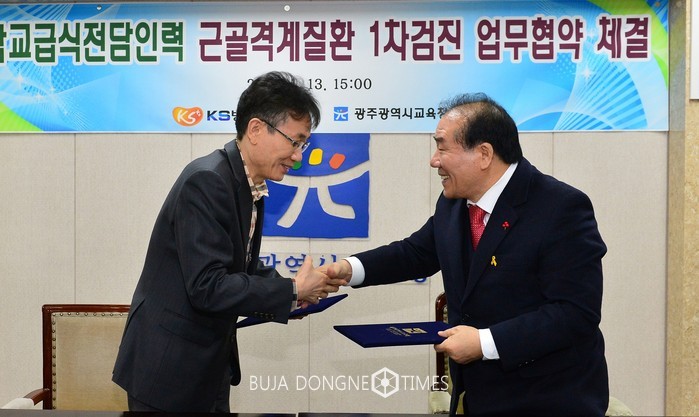 [광주=부자동네타임즈 손권일 기자]광주시교육청(교육감 장휘국) '학교급식전담인력 근골격계질환자 관리를 위한 업무협약'을 지난 12월 29일 조선대학교병원과 체결한데 이어 1월 13일 KS병원(병원장 이영철)과 체결했다.