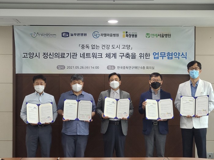[부자동네타임즈 김인수기자] 고양시 중독관리통합지원센터가 ‘중독 없는 건강 도시’를 만들기 위해 관내 4개 정신의료기관(늘푸른병원, 라엘마음병원, 상록의료재단 화정병원, 연세서울병원)과 지난 26일 업무협약을 맺었다.
