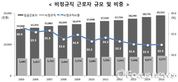 | △ 비정규직 근로자 규모 및 비중. <자료제공=통계청> |