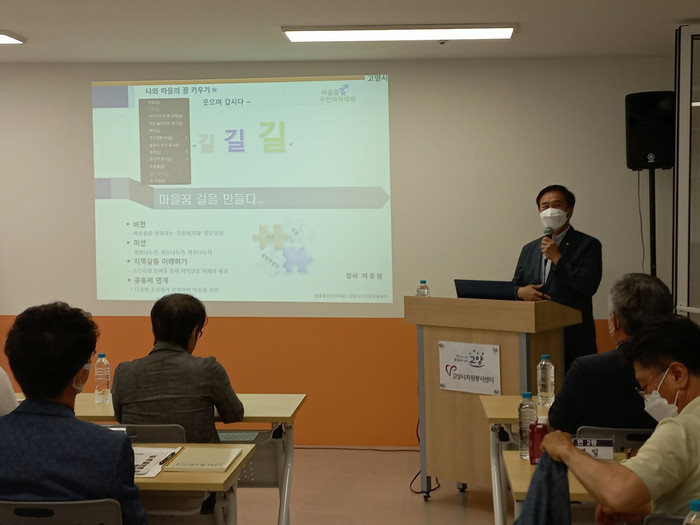 입학식에 이어 제1강 강사로 나선 지용원 고양동 주민자치회장은 ‘주민자치회를 통한 나와 마을의 꿈 키우기’에 대한 자신의 경험과 이야기를 전해 수강생들로부터 열띤 호응을 얻어냈다.