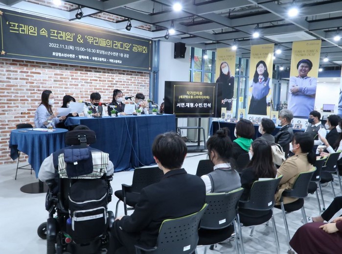 [부자동네타임즈 김인수기자] 고양시청소년재단 토당청소년수련관(대표이사 박윤희)은 수련관 1층 공감에서 장애 청소년 문화예술 함양프로그램‘프레임 속 프레임’공유회를 개최했다.