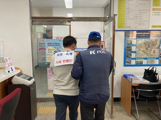 이번 모의훈련은 민원실에서 발생할 수 있는 폭언·폭행 상황에서 민원담당 공무원과 민원실을 방문한 주민들의 안전을 확보하는 등 신속한 현장 대응을 위해 추진됐다.