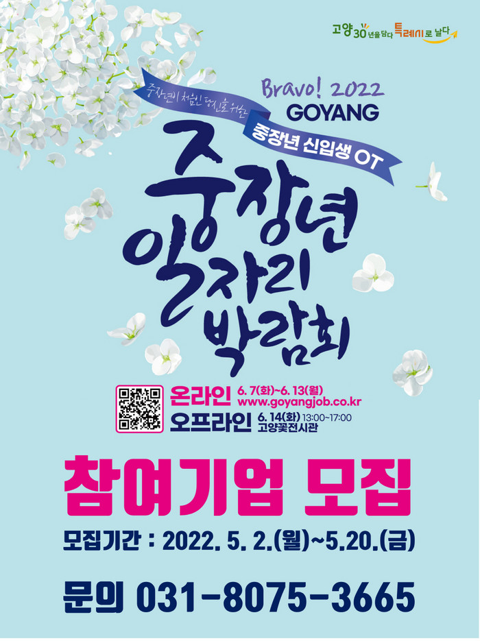 [부자동네타임즈 김인수기자] 고양시가 Bravo! 2022 고양시 중장년일자리박람회 개최를 앞두고 5월 2일부터 5월 20일까지 참여기업을 모집한다.