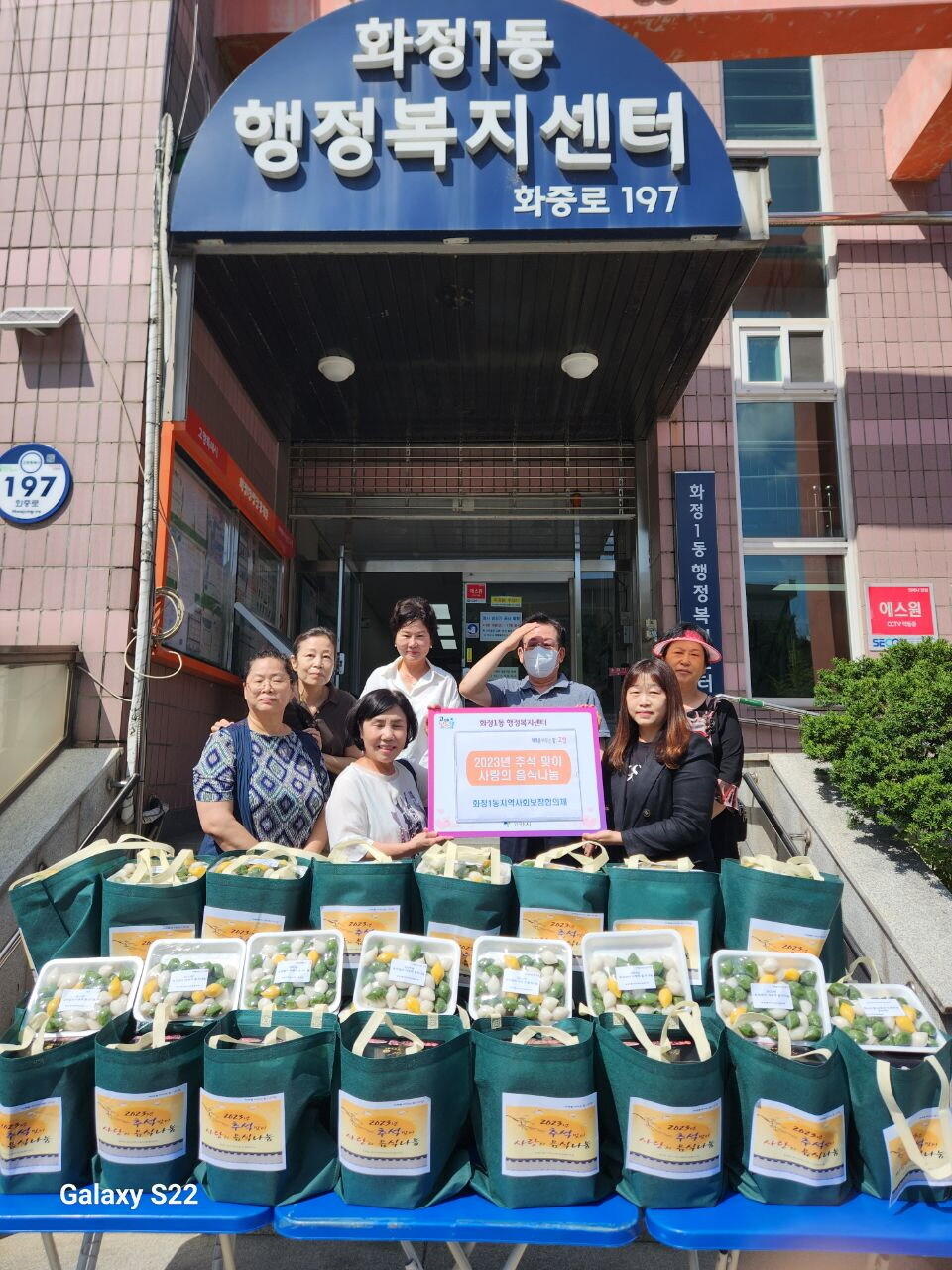 사랑의 명절 음식 나눔 행사는 화정1동 지역사회보장협의체의 특화사업이다. 이날 위원들이 직접 송편(30kg)과 소고기(30kg)를 개별 포장하여 관내 홀몸어르신 등 저소득층 30가구에 전달하며 명절 인사를 드리고 안부를 확인했다.