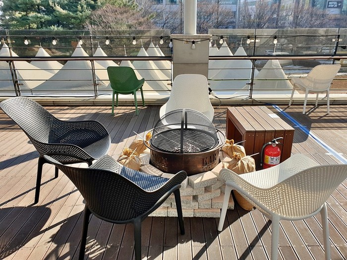 루프탑 불멍은 편안한 좌석과 함께 실제 숯과 번개탄을 이용해 캠핑에 온 느낌을 도심 속에서도 느낄 수 있게 기획됐다.