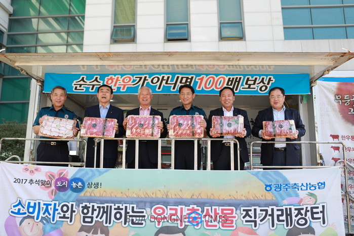 광주지방경찰청(청장 배용주)에서는 추석을 앞두고 9월 22일(금) 10시경 광주경찰청 청사에서 농협 광주지역본부와 공동 주관으로 추석맞이 농촌사랑 「농·축산물 직거래장터」를 개장하였다.