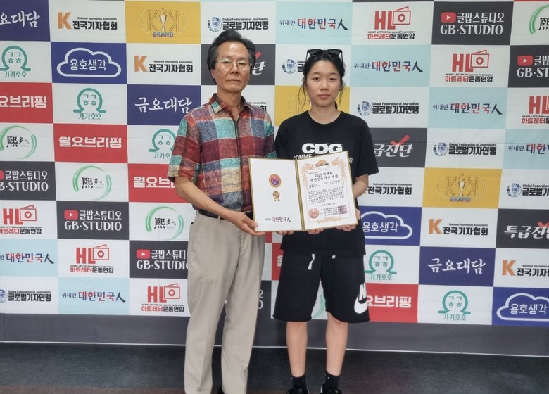 한국기독글로벌스쿨 11학년 박도영, 도연 쌍둥이 자매가 지난 16일 전국기자협회 대강당에서 개최한 2025 위대한 대한민국 국민대상 시상식 사회봉사부문에서 사회봉사최고대상을 수상했다.
