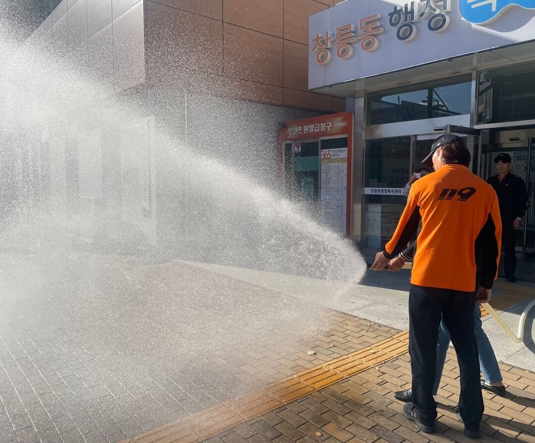 이날 훈련은 창릉동 직원으로 구성된 자위소방대 15명이 지휘반, 대피유도반, 진압반, 구조구급반으로 나누어 각 대원별 임무를 숙지한 후 실제 훈련에 임했다. ▲화재 통보와 119 신고 ▲발신기 및 수신기 작동 ▲민원인 대피 유도 ▲소화기 및 옥내소화전 사용법 교육 등 실제 상황을 대비한 훈련과 교육을 실시하여 화재 발생 시 신속한 대응 능력을 강화했다.