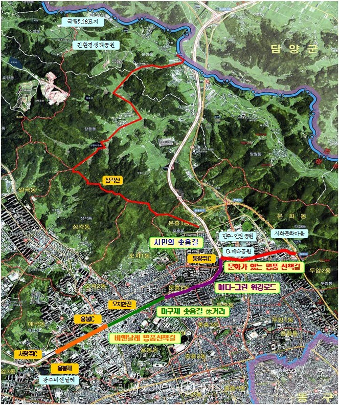 | △광주시 북구가 용봉동 비엔날레 주변 도심 속 녹지공간을 활용한 자연과 함께 하는 걷고 싶은 명품 신책길 조성에 나선다 |