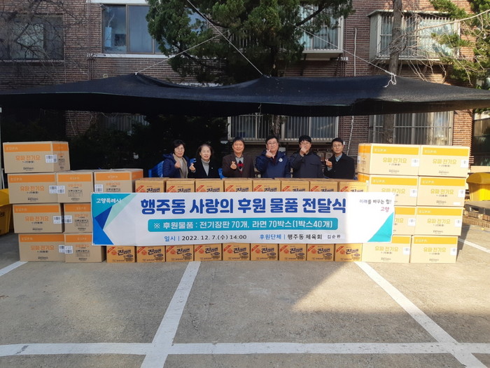 [부자동네타임즈 김인수기자] 고양특례시 행주동 행정복지센터는 김순환 행주동 체육회장이 지난 7일 관내 취약계층을 위해 사랑의 후원물품을 전달했다고 밝혔다. 후원물품은 전기장판 70개, 라면 2800개로(500만 원 상당) 구성됐다.
