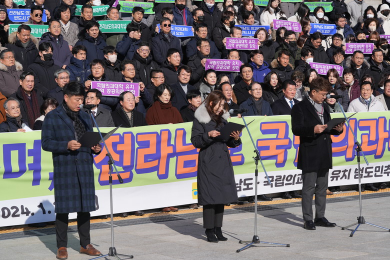 1월 25일 전라남도 국립의과대학 유치 범도민추진위원회(이하 범추위)가 국회의사당 앞에서 ‘전라남도 국립의과대학 유치 범도민 결의 행사’를 개최하고, 국립의과대학 유치에 대한 의지를 굳건히 다졌다.
