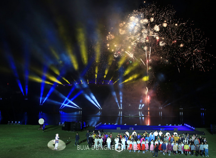 [부자동네타임즈 이세제 기자]밀양시(시장 박일호)는 추석날인 지난 4일 오후 7시 영남루와 밀양강변 일원에서 쌀쌀한 날씨에도 1만 명 이상의 관람객이 운집한 가운데 나노국가산단 확정 기념과 한가위 맞이 밀양강 오딧세이의 그 첫 번째 공연을 성황리에 개최했다.