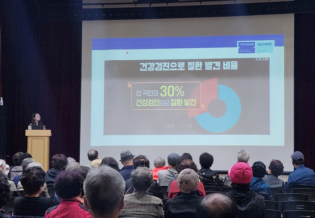 [부자동네타임즈 = 김인수 기자] 일산동구보건소가 지난 26일 일산노인종합복지관 1층 대강당에서 복지관 회원 및 주민 100여명이 참석한 가운데 찾아가는 시민건강 강좌 ‘암 예방 및 암 검진의 중요성’을 운영했다. 강의는 국민건강보험 일산병원 가정의학과 문한빛 교수가 진행했다.