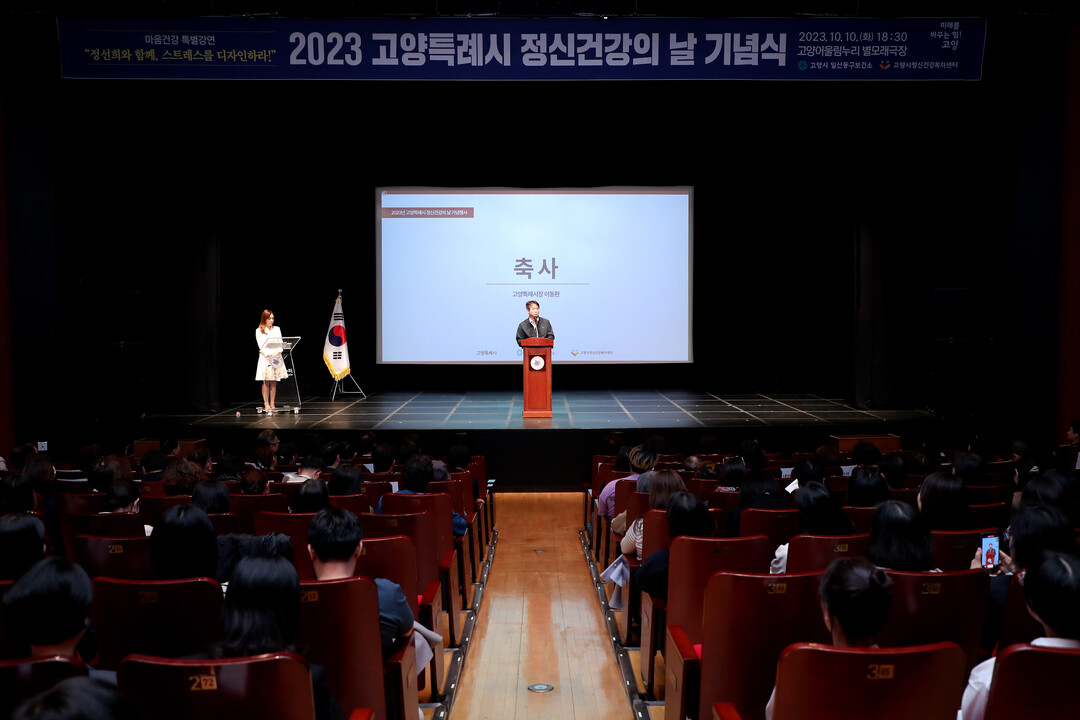 2023년 정신건강의 날 기념행사는 ▲1부 기념식 ▲2부 특별강연 순으로 진행되었다. 1부 기념식에서는 정신건강사업에 기여한 공로자에 대한 표창이 이루어졌으며 올해는 5명이 고양특례시장상을 수상했다.