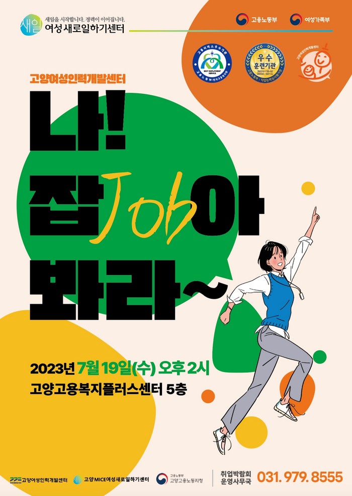 [부자동네타임즈 김인수기자] 고양여성인력개발센터(관장 유혜림)는 전시복합산업(MICE) 분야의 구직을 원하는 청년층 여성구직자와 경력단절여성의 취업지원을 위해 7월 19일 고양고용복지플러스센터 5층에서 현장 채용행사 ‘나! 잡(JOB)아 봐라’를 운영한다.