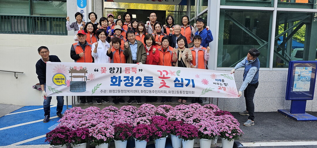 최호석 화정2동장은 “국화 식재 활동에 동참해 주신 직능단체 회원들과 주민 여러분께 감사드린다.”라며, “앞으로도 지속적으로 계절 초화를 식재하여 꽃향기가 가득한 마을을 만들기 위해 힘쓰겠다.”라고 밝혔다.
