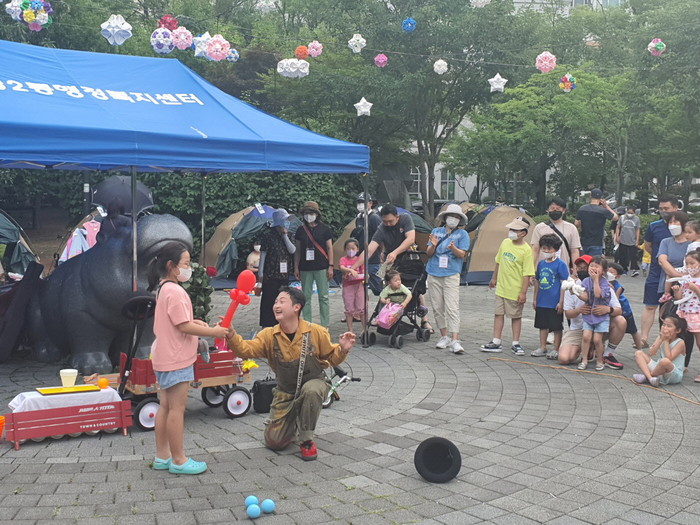 이날 어린이가 직접 물건을 파는 나눔장터를 비롯해, 페이스페인팅, 천연비누 만들기, 소원 팔찌 만들기, 디퓨저 만들기 등 체험 행사가 진행됐으며, 부대행사로 준비된 마술공연은 나들이 나온 가족에게 즐거운 시간을 선사했다.