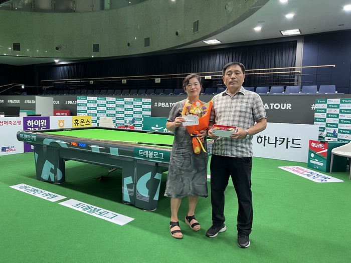 PBA투어를 꾸준히 시청하면서 당구에 대한 매력을 알게 됐다는 아내 김정숙씨는 “용현지(LPBA·하이원리조트) 선수를 좋아한다. 현장에서 여러 실제로 선수들을 보니 너무 반갑다”면서 “모든 선수들이 멋진 플레이를 보여주면 좋겠다”고 기대했다. ‘슈퍼맨’ 조재호(NH농협카드)의 팬인 남편 박석구씨는 ‘1호 관객’을 위해 협회 측에서 준비한 선수 사인볼과 꽃다발 증정에 “당구를 좋아하다 보니 이런 영광이 다 있다”고 웃었다.