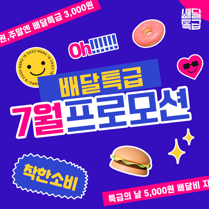 이벤트 기간 동안 ▲신규가입자 2,000원 할인쿠폰 지급 ▲3,000원 배달비 지원 ▲5,000원 할인쿠폰을 제공하는 ‘고양 특급의 날’ ▲금, 토, 일마다 3,000원 쿠폰을 지급하는 ‘주말엔 배달특급’ ▲초복(7.16.~7.17.) 4,000원 할인 프로모션 ▲중복(7.26.~7.30.) 3,000원 할인 프로모션 등 풍족한 할인 혜택이 제공된다.