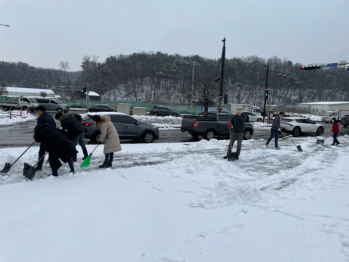 특히, 도로 및 마을 안길 등은 제설차량 반복운행으로 염화칼슘을 살포하였고, 버스정류장, 인도 및 횡단보도는 고봉동 제설봉사단과 동장 등 관계공무원이 모여서 제설작업을 실시하고 취약지역을 점검하였다.
