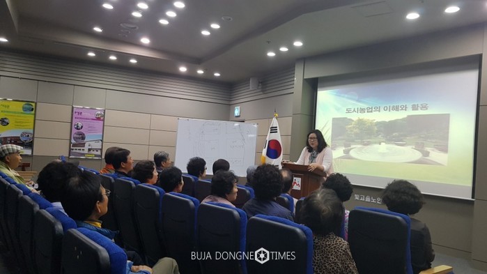 이날 빛고을노인건강타운 홍보관에서 텃밭 체험을 희망하는 어르신들과 빛고을노인건강타운 문혜옥 본부장을 비롯하여 광주광역시농업기술센터 이행숙 소장, 미래농업과 김시라 도시농업팀장, 양현철 농춘지도사가 참석하여 '자연 치유형 텃밭조성'사업의 취지와 '도시농업'에 대한 설명회도 함께 가졌다.