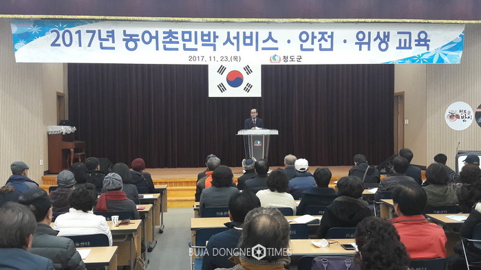 [부자동네타임즈 서소민 기자]청도군(군수 이승율)은 23일(목) 농업기술센터 대회의실에서 2017년농어촌민박 서비스‧안전‧위생 교육을 실시하였다.