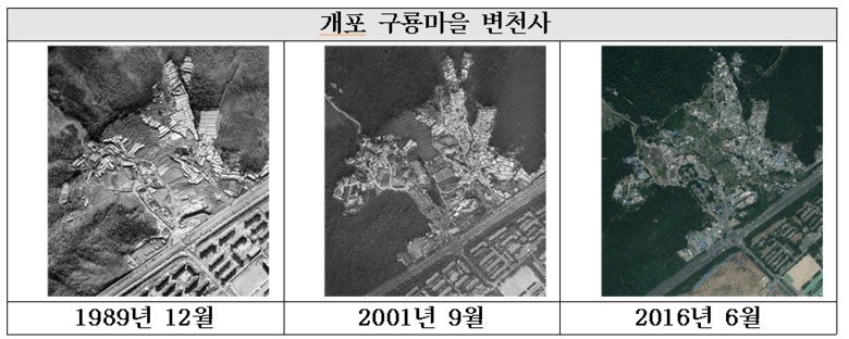 ‘개포 구룡마을’은 1970~1980년대 강남 일대 개발 등으로 철거민 등 사회적으로 어려운 여건에 처한 소외계층 주민들이 이주해 살면서 형성됐다. 이후 1989년 양재대로가 개통하며 ‘개포 구룡마을’과 주변 지역 간 물리적 단절을 심화시켜, 불법 무허가 판자촌 등 주거 환경이 악화됐다.