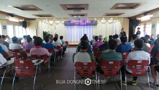 [무주=부자동네타임즈 이정술 기자]사회적 약자를 위한 추진시책과 가정폭력, 학교폭력 등 그동안 추진한 4대악 추진 시책을 설명하고 앞으로의 추진방향을 주민들에게 홍보하는 치안설명회를 위해 무주경찰서(서장 최성규)는 9일 오전 안성면사무소를 방문해 마을이장, 주민 등 70여명이 참석한 가운데 주민의 안전과 4대악 근절을 위해 찾아가는 치안설명회를 개최했다.
