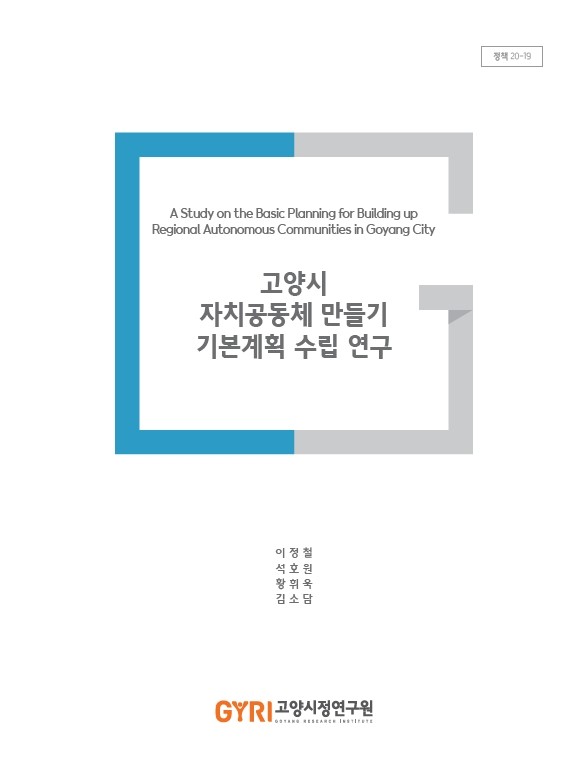 이러한 민선7기 자치도시 구현을 위한 세부 과제를 비롯하여 ‘고양시 자치공동체 만들기 지원 등에 관한 조례’에 근거하여 고양시정연구원에서는 고양시 자치공동체 지원 활성화를 위한 목적으로 2020년 6월부터 11월까지 고양시와 고양시의 자치공동체 및 주민자치와 관련된 선행연구 분석과 현황 분석, 인식 조사 및 관계자 인터뷰 등을 수행하고 이를 종합하여 자치공동체 만들기 기본계획안을 제안하였다.