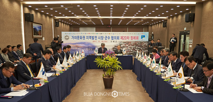 [부자동네타임즈 손권일 기자]구례군은 지난 29일 구례자연드림파크 회의장에서 영‧호남 20개 시장‧군수 등이 참여한 가운데 ‘가야문화권 지역발전 시장.군수 협의회 제20차 정례회의’가 열렸다고 밝혔다.
