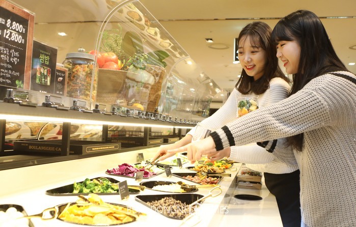 소공동에 위치한 롯데백화점 본점 샐러드바에서 고객들이 샐러드를 고르는 모습